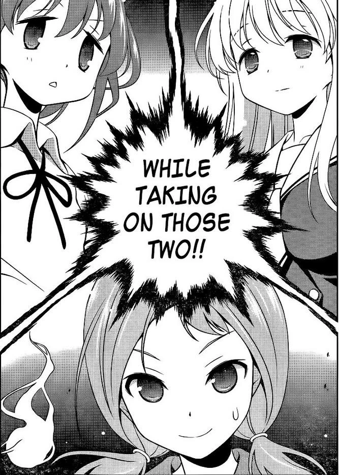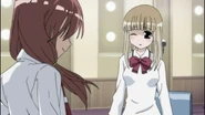 Before the second half of the sergeant match, Hisa calls Nodoka so that she can give the phone to Mako to discuss their strategy. Hisa tells her that she should continue doing the same but put a little more faith in her own thoughts as well.
