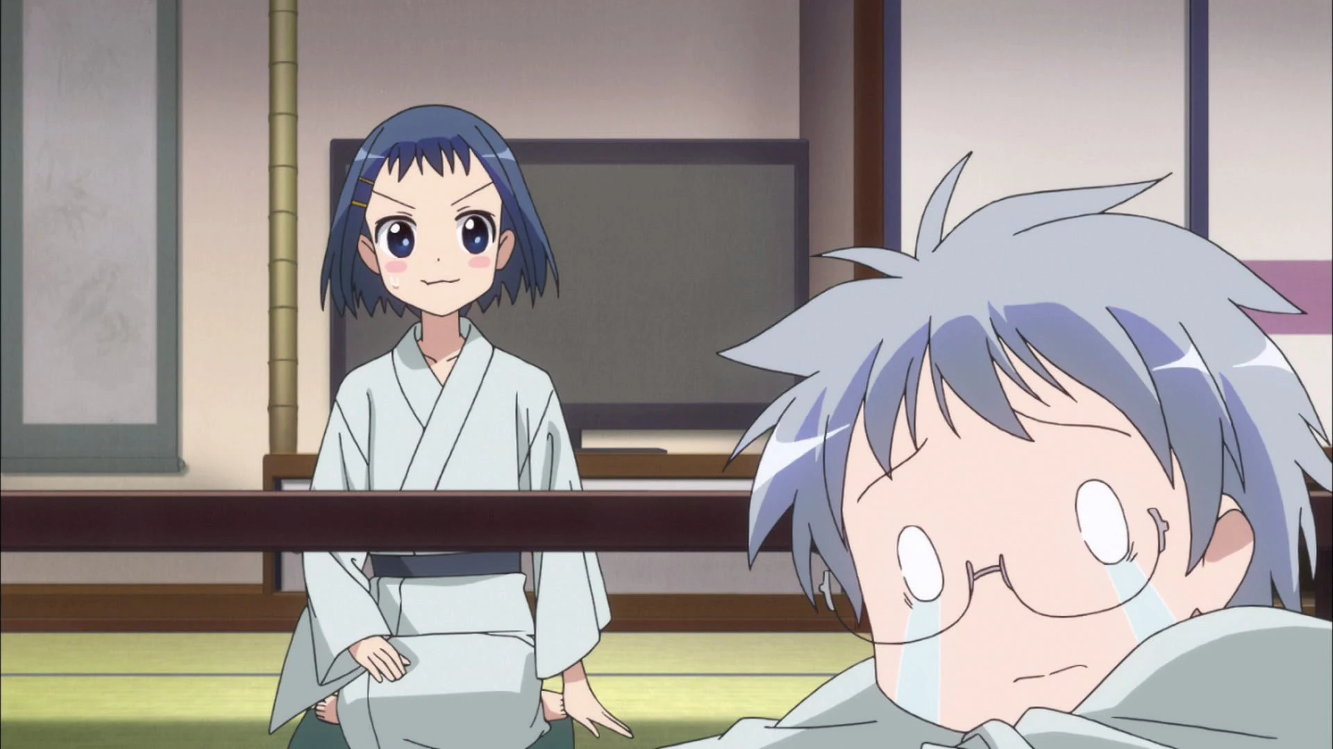 When Hisa Takei asks who won their practice match, Miharu interrupts Kana to say that they were overpowered.