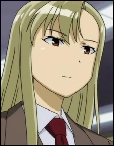 Takako has yellowish-brown hair that has bangs hanging on the right side and brown eyes.