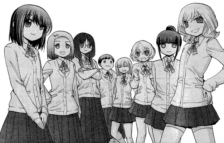 The remaining club members are two second year students, the club president Shizuku Nozu and Rio Takuwa, as well as two third year students, Mirin Katsube and Ayuko Yamamoto. The previous year, all four were defeated in the first round of the city individual tournament. Kyouka Inamura, Kanna Ishitobi, Hayari Mizuhara, Rena Mototsune, and Shino Shiratsuki joined the club. The club advisers are Chisa Sakane and the elderly Nakamura.