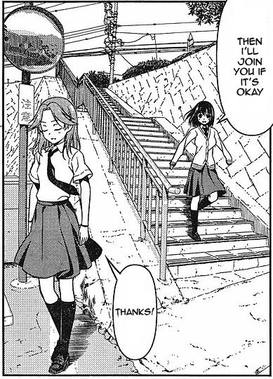 A bit after the tournament Yumi is at the school pool swimming and discussing with Satomi the invitation to go to the combined training camp set up by Kiyosumi. While Kanbara is unsure, Yumi convinces her that it would be good for the club. After they agree to go, she decides to head for the club room and it is revealed that Momoko was actually helping her swim. In the club room she along with the others cheer their new club president Mutsuki on in writing an acceptance letter.